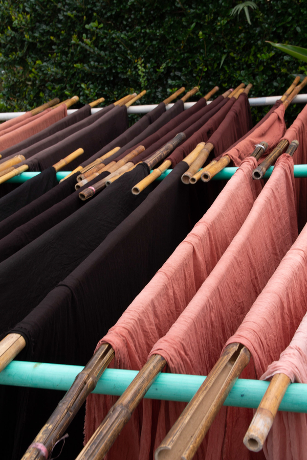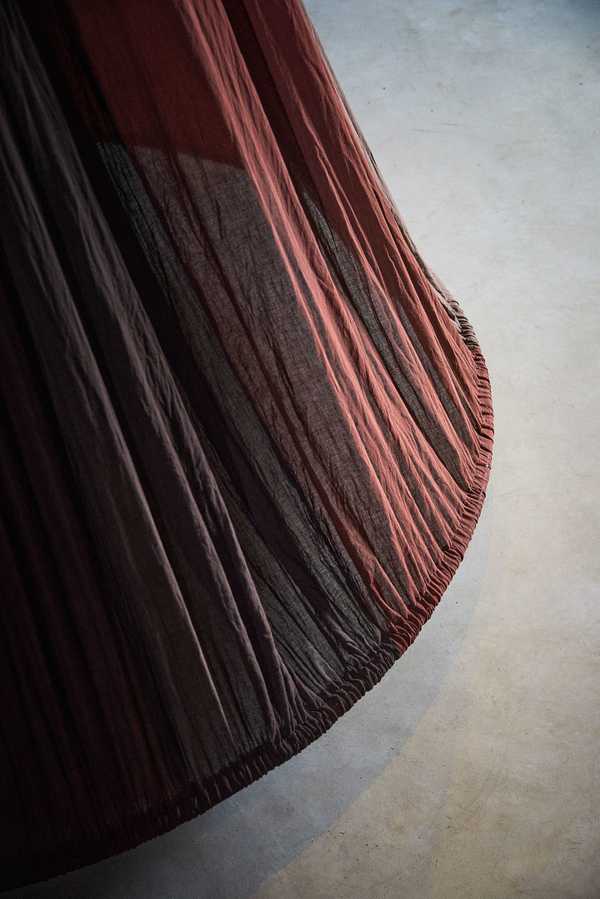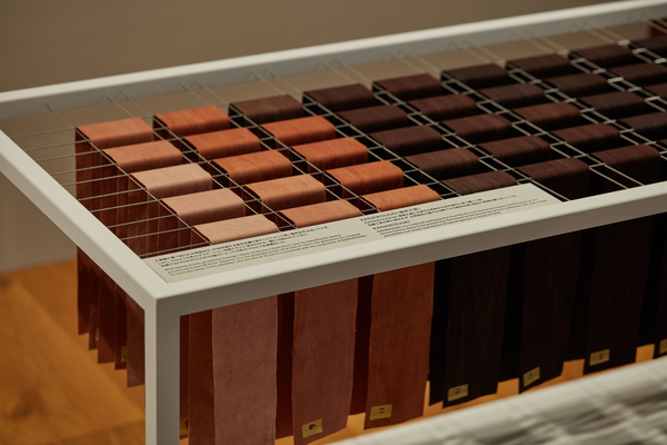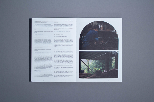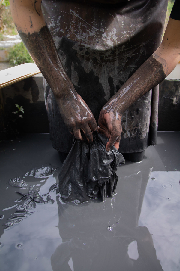 Pauline Agustoni and Satomi Minoshima teamed up with craftsman Yukihito Kanai and Dorozome, artisans from dyeing workshop Kanai Kougei, to develop a textile installation that displays the process movements and colours of Dorozome, a traditional Japanese craft in which threads are repeatedly dyed in wood bark and mud until they reach a deep black colour. • Enriched by a three-week research trip to the island of Amami Oshima, the duo developed a scenography that expresses the craft’s repetitive nature and unique aesthetics. With their installation and publication introducing eleven interviews of Dorozome artisans, they aim to communicate about crafts in a way that does not nurture exoticism or nostalgia but highlights Dorozome’s profound relationship with its environment and culture. As designers, they believe in the alternative, counter-cultural, almost rebel potential of crafts to resist current, damaging material production systems.