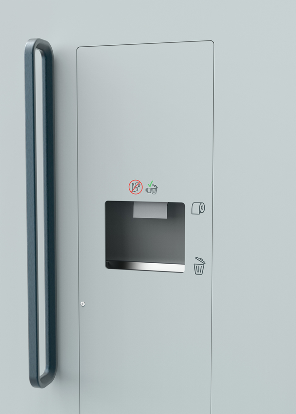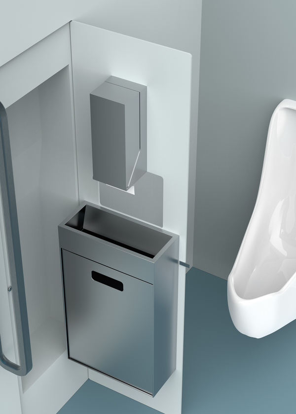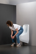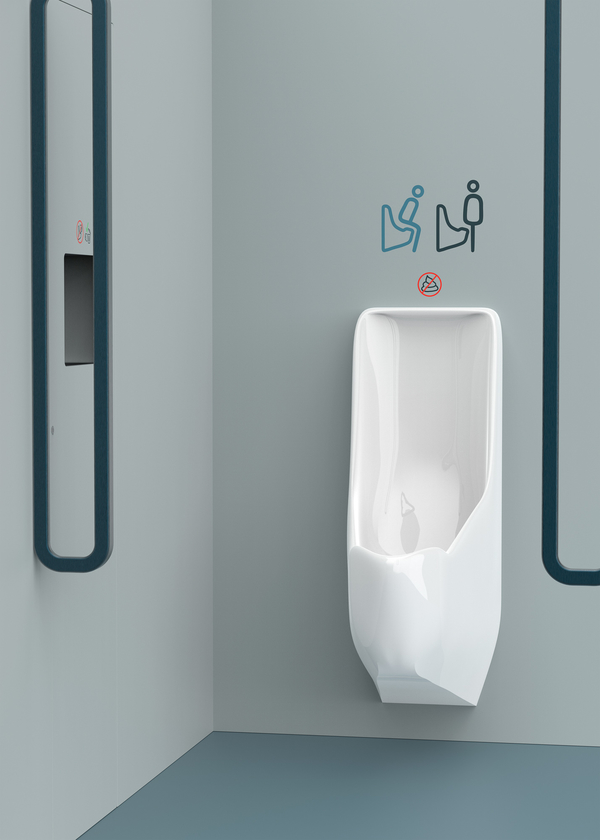 Urinals convince with their simple design, fast and contactless urination. Within the public space, they are still characterised by a patriarchal society which pays too little attention to universal needs. The design of toilets and urinals is not ergonomically adapted to people with a vulva, making it difficult for them to use public sanitary facilities. urinall is an all-gender urinal that offers contactless use regardless of genitalia. Following the principle “form follows function”, this design is adapted in height, angle and shape to the needs of all genders. urinall functions without water, and used toilet paper is disposed of in a separate receptacle. Not only does this save valuable water, it also allows for the separate collection of urine, which enables recovery of the finite raw material phosphorus – a fundamental nutrient for plant growth. urin*all is intended to complement and not replace the existing lavatory experience.