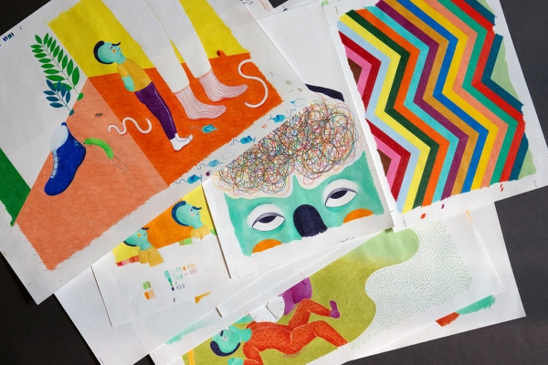 Furthermore, epilepsy is not portrayed as gloomy and threatening, but as an integral part of life. The brightly coloured pencil drawings convey a colourful mood that can also have an encouraging and uplifting effect.