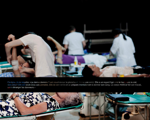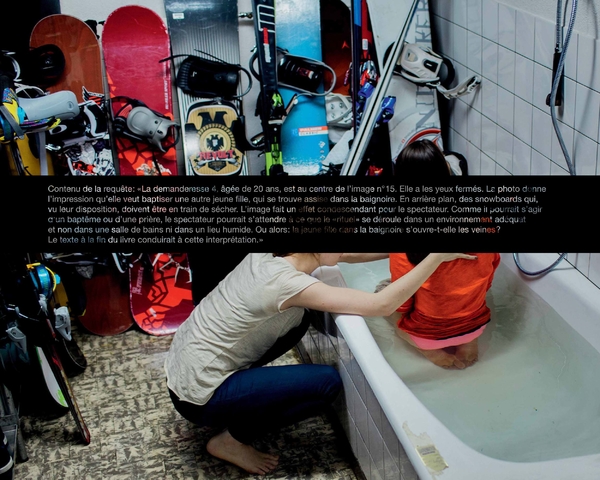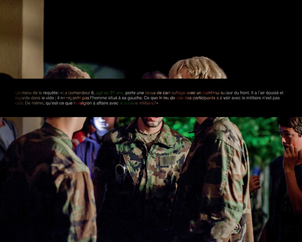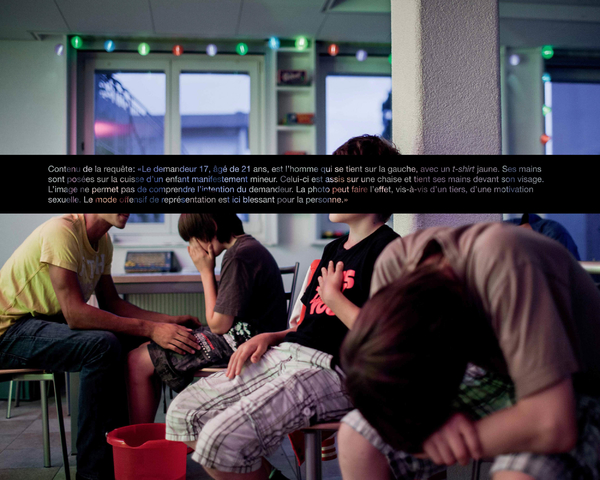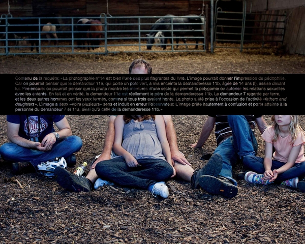 A few days after his book In Jesus’ Name was published, a lawyer, hired by the ICF and representing 21 followers, protagonists in the photographs, filed a complaint and obtained an immediate ban on the book. Christian Lutz reacted by revisiting the banned photographs and delivering new images blacked out with thick banners. It is now impossible to recognise the faces. As an expression of prejudice, the text of the complaints filed by the plaintiffs is printed over this obliteration. From a work banned stems a new, even stronger one. In the urge to interpret images, one tends to project in them one’s own beliefs and doubts, and soon emerges the certainty of seeing in them what was feared.