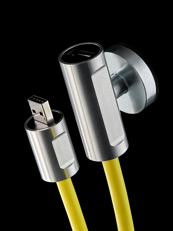 Recyclable nylon (Cliptray), Cotton (Ghost), PUR cable and aluminium (Magneto)