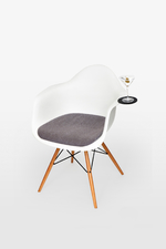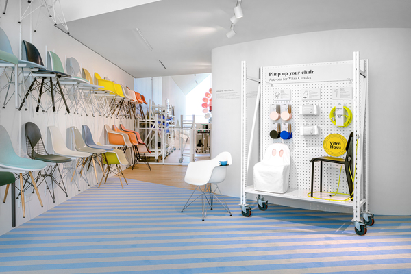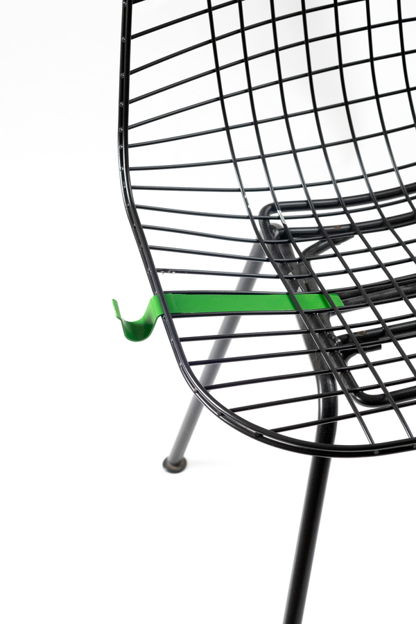 Pimp My Chair is a unique collection for the VitraHaus by Tobias Brunner, focused on creating a range of accessories for chairs that empower users to personalise and make them their own. • The project is rooted in the belief that design classics can be made more relevant and personal to our lives by exploring new ways to interact with them. • The collection of accessories includes a clip-on side table, a magnetic USB extension, a spray-painting stencil and a metal extension for hanging clothes and other items. Each accessory is created to enhance the functionality of each iconic chair while allowing users to explore and remix the design in their own way. • This project aims to foster a more creative and participatory approach to design, emphasising the user’s role as a co-creator. By providing a range of tools and accessories, Pimp My Chair encourages users to engage with design classics in a dynamic and iterative process of exploration and experimentation, resulting in a more personal and meaningful connection between users and design classics.