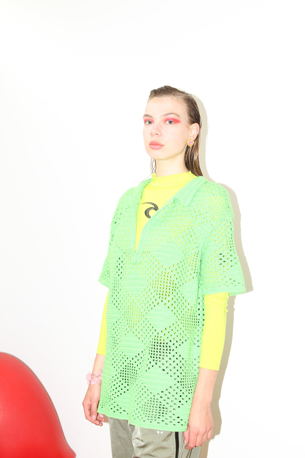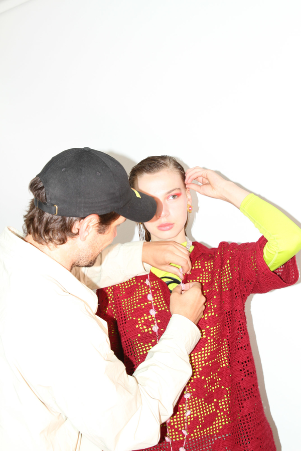 Flaka Jahaj’s work is about the artisanal craft of knitwear and crochet. Her aim is to sensitise people to the value of intricate know-how and unite her traditional backgrounds of Kosovo and Switzerland. She creates to honour her grandmother and the heritage she passed on by teaching young Flaka how to knit and crochet.