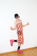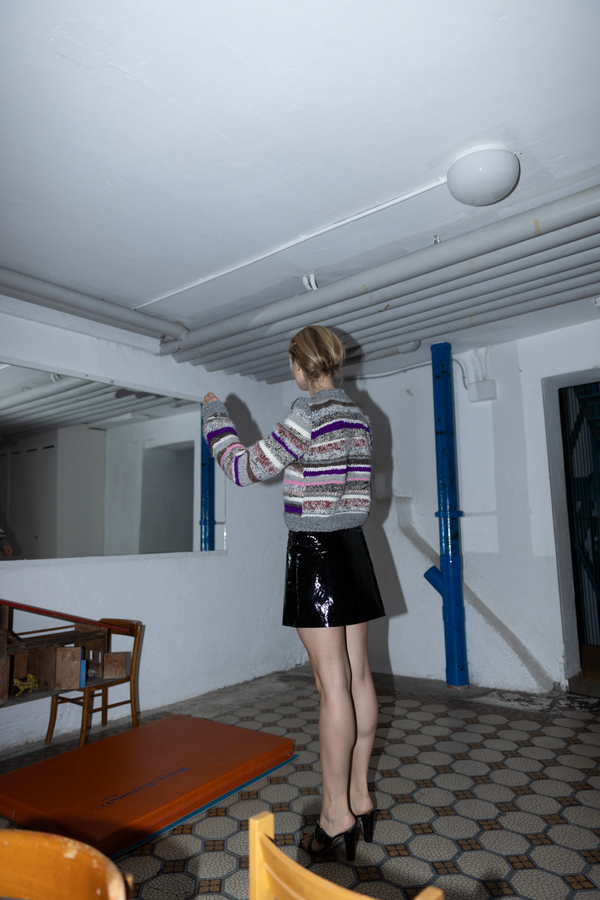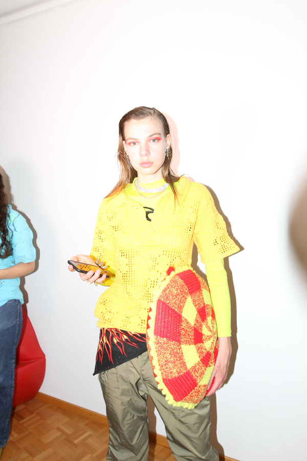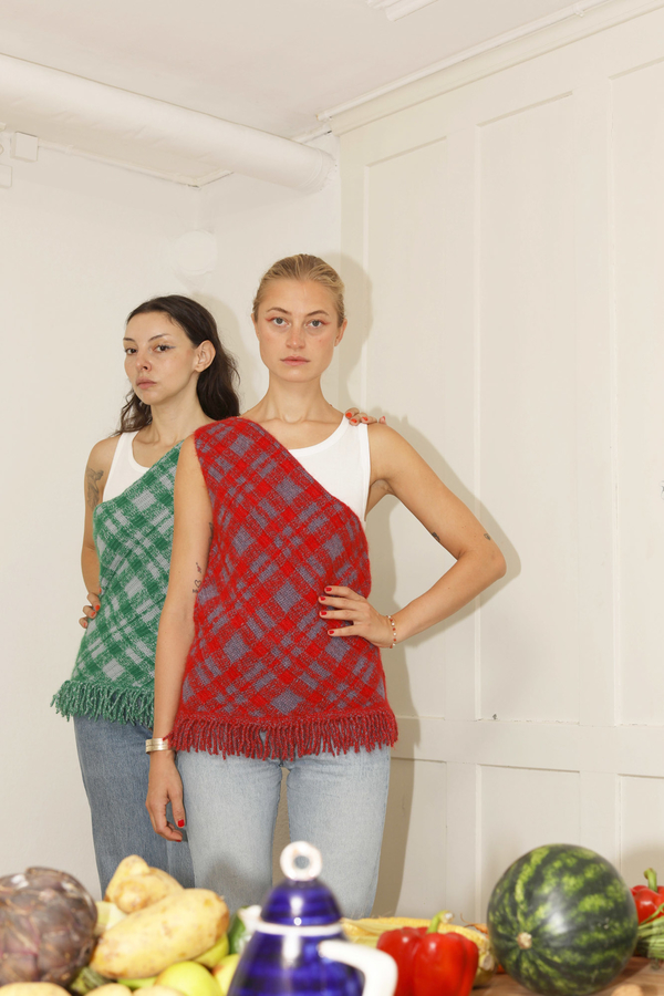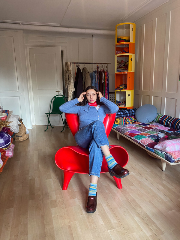 What Flaka Jahaj loves about the craft is the connection to cultural history, the archaic simplicity that allows elaborate creation and its poetic and nostalgic value in our highly developed surroundings. She works item by item and sources yarns mainly from deadstock and second-hand stores. She repeats her styles in shapes. The yarn and colour composition for each piece is unique and limited.