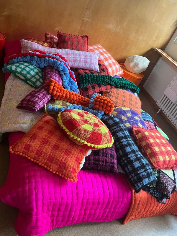 Difficult to measure, several knitted pieces, jumpers, dresses and interior objects such as pillows and plaids