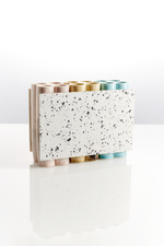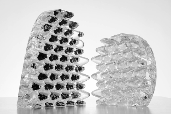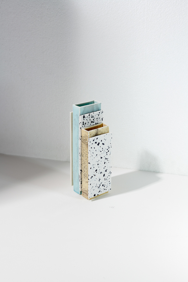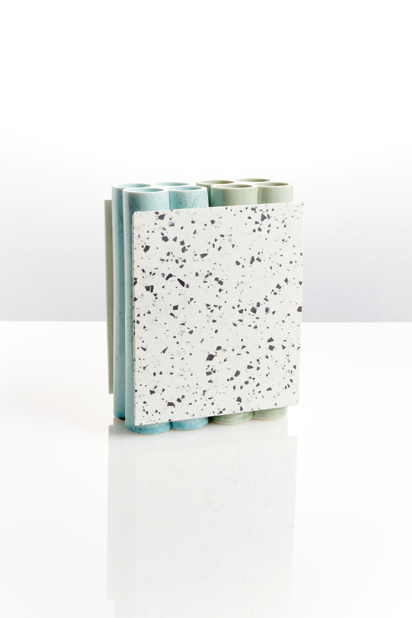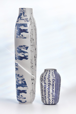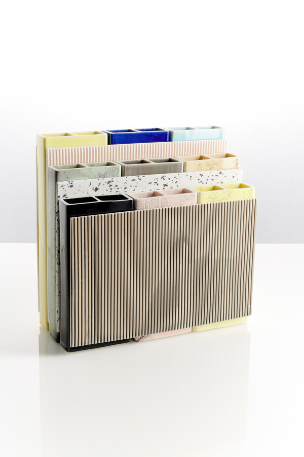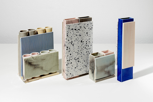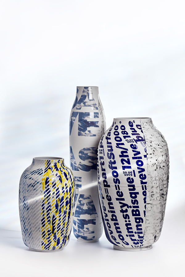 Laurin Schaub engages with the craft of ceramics in our era and ponders: what is pottery today, and what becomes of a centuries-old craft when faced with industrial aesthetics and digital logic? He works manually in the traditional way, drawing upon contemporary aesthetic references and technical aids. For instance, the individual parts of the porcelain vases from the A.Part series are crafted using 3D-printed tools, formally referencing industrially manufactured semi-finished products. Similarly, the objects from the Analog.y project, shaped on a potter’s wheel, are produced through a continuous interplay of manual and digital techniques. With a laptop and potter’s wheel working hand in hand, this creates a juxtaposition of two mindsets. A more intuitive approach led to Relief. Here, a roughly cut industrial foam product served as inspiration for designing a series of table objects made of cast glass. This fusion of tradition and innovation may redefine ceramics, bridging the past with the future in a unique narrative.