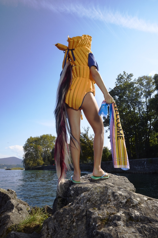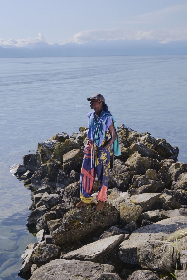 • Donation: Le Vestiaire Social, Typhaine Guihard, Europ’sails, le Service Culturel de la Ville de Genève, Geneva • Handmade Screen-Printing: Francis Couturier, Valence • Knitting Collaboration: Robyn Baumgartner, Geneva • Hair Artists: Deborah Guiragossian and Christine Mimboe, Valence • Glass Jewelry: Degrés, Guillaume Zwann, Morges • Leather Accessories Sewing: Julie Erlich, Aix-les-Bains • Embroidery: Brode-it, Robin Herr Bastos • Art Direction Show: Arnaud Bacharach, Paris • Scenography Showroom: Sapid Studio, Cécile-Diama Samb and Michael Piderit, Geneva • Assistant: Marielle Gobet, Geneva • Intern: Daniel Chaves, Geneva • Photographer: Farah Mirzayeva, Geneva • Graphics and Support Collaboration: Atelier Tramons, Clovis Duran • Teasing Video: Luca Humm, Geneva • Show Video: Grégoire Malandin, Geneva