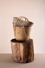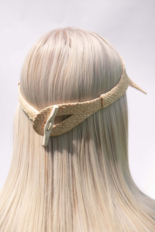 Cotton, natural raphia, glass, stainless steel, leather, nylon