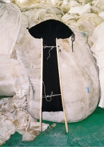 47 data-base boards, ~ 10-15 printed photos, 1 book, 1 piedestal with light, 2 hats, industrial felt pieces, 2 wooden tools