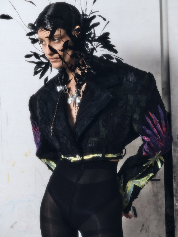 As the creator of the eco-responsible brand RAPPAZ, the designer is committed to exploring textile materials, driven by her passion for nature and art. The inspiration for RAPPAZ comes from abandoned urban spaces and artists such as Picassiette, evoking faded colours in harmony with lush vegetation. RAPPAZ positions itself as a luxury ready-to-wear brand that emphasises craftsmanship and uniqueness while offering an haute couture capsule.