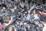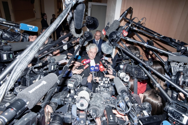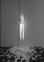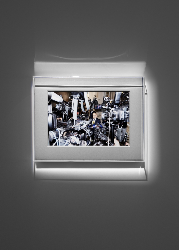 The brouhaha caused by both the flow of printed tickets and the number of microphones and cameras in the images depicts information as a mass consumer product that is staged, transformed and assimilated. Truth alone is no longer important; it is now the clay of a machine that imposes on us a construction of our contemporary history, by and for particular interests. A specific narrative thus unfolds, and the perception of our shared contemporary history is shaped.
