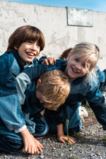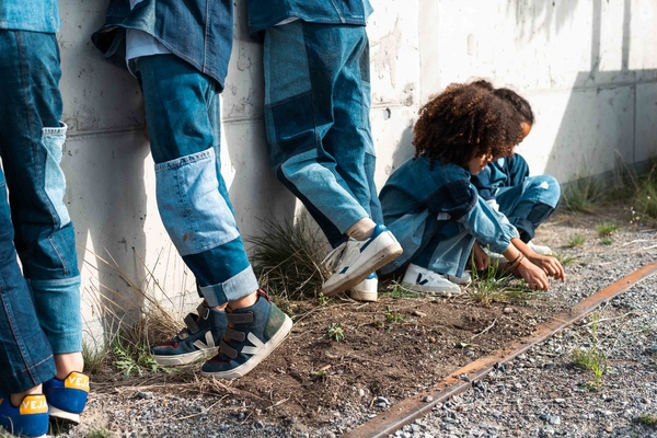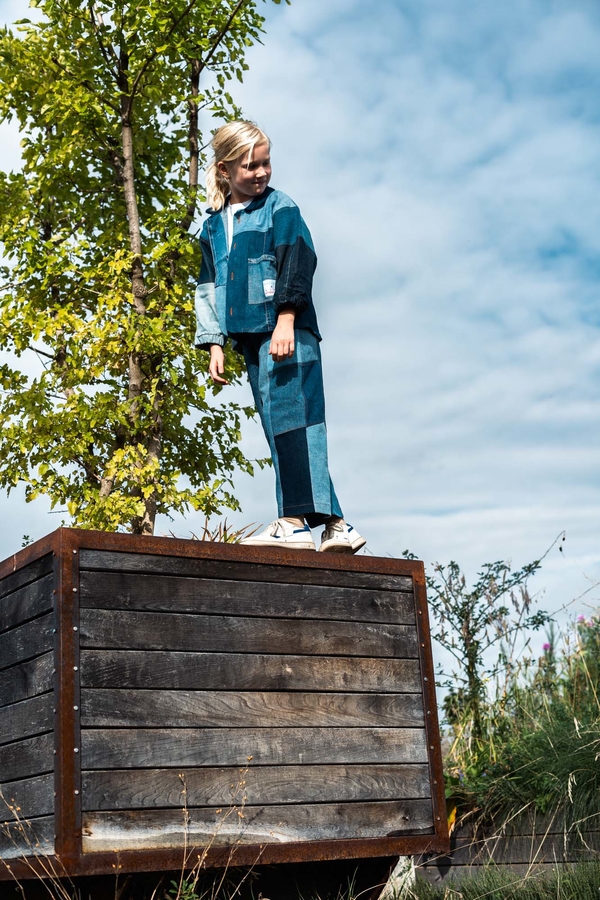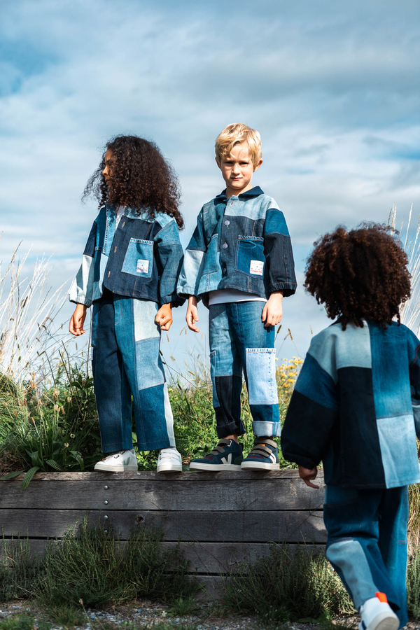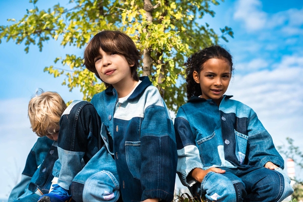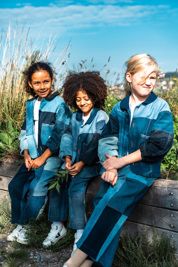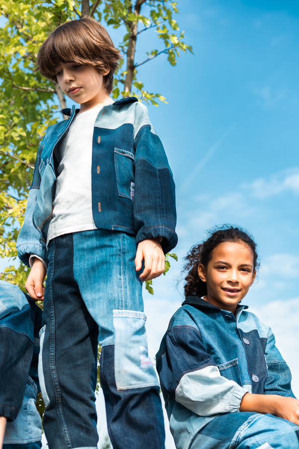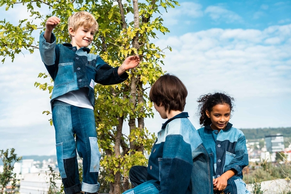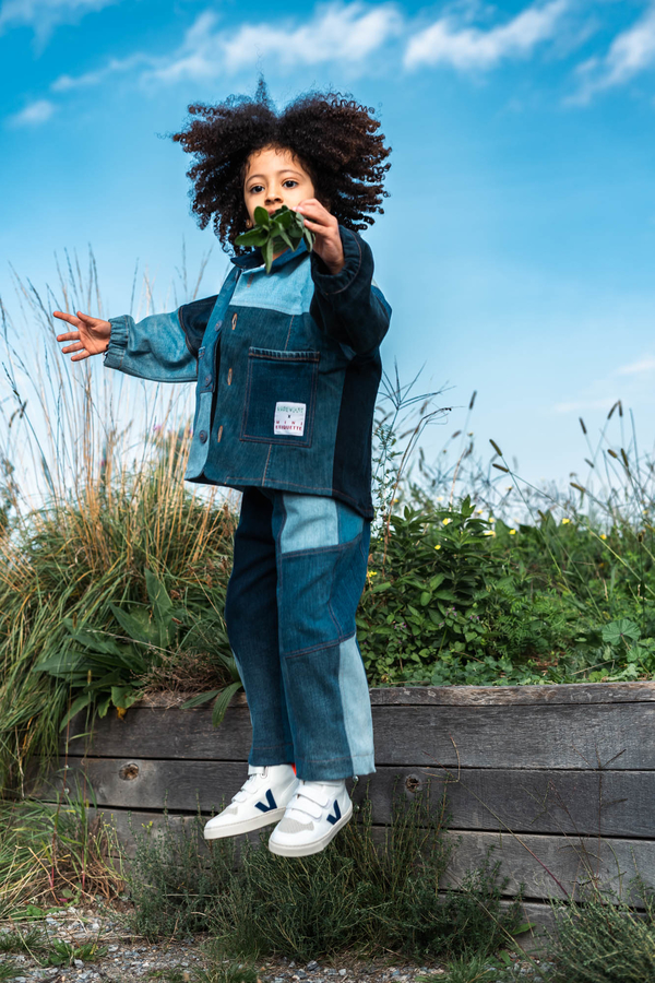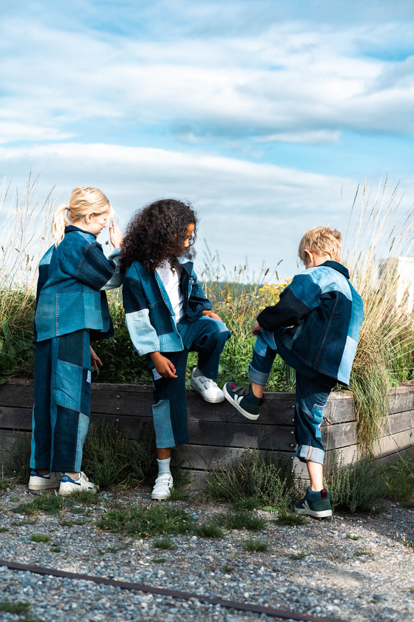Nudie Jeans offers a lifetime repair guarantee on its jeans, but some of the trousers really cannot be salvaged or have never been sold due to a production error. These became the raw material for the collaboration with the Swiss fair fashion retailer Rrrevolve. The designers carefully sorted, cleaned and rearranged 650 pairs of jeans and gave them a new lease of life as unisex patchwork children’s dresses in various shades.
