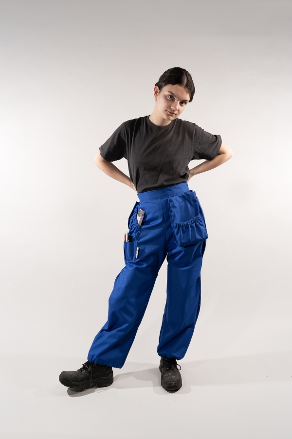 WWW are work trousers designed by and for women that aim to fill this gender gap. They are specifically designed for female woodworkers (carpenters, cabinetmakers etc.). These trousers offer a new aesthetic and provide comfort, adaptability, flexibility and of course protection.