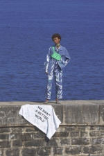 • Donation: Le Vestiaire Social, Typhaine Guihard, Europ’sails, le Service Culturel de la Ville de Genève, Geneva • Handmade Screen-Printing: Francis Couturier, Valence • Knitting Collaboration: Robyn Baumgartner, Geneva • Hair Artists: Deborah Guiragossian and Christine Mimboe, Valence • Glass Jewelry: Degrés, Guillaume Zwann, Morges • Leather Accessories Sewing: Julie Erlich, Aix-les-Bains • Embroidery: Brode-it, Robin Herr Bastos • Art Direction Show: Arnaud Bacharach, Paris • Scenography Showroom: Sapid Studio, Cécile-Diama Samb and Michael Piderit, Geneva • Assistant: Marielle Gobet, Geneva • Intern: Daniel Chaves, Geneva • Photographer: Farah Mirzayeva, Geneva • Graphics and Support Collaboration: Atelier Tramons, Clovis Duran • Teasing Video: Luca Humm, Geneva • Show Video: Grégoire Malandin, Geneva