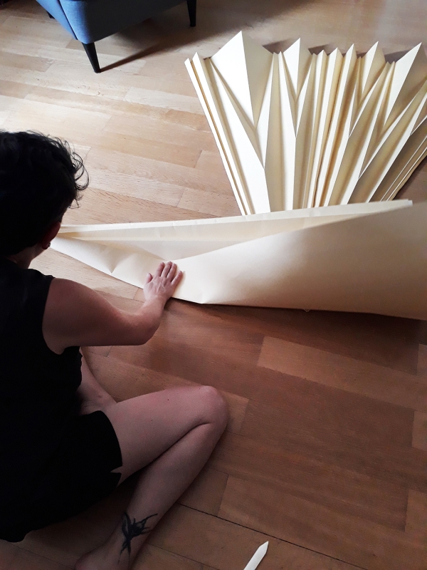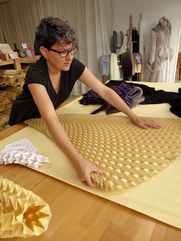 For the past few years, Eva has been developing the craft, teaching students and giving workshops for anyone, experimenting with materials and creating new pleating patterns.
