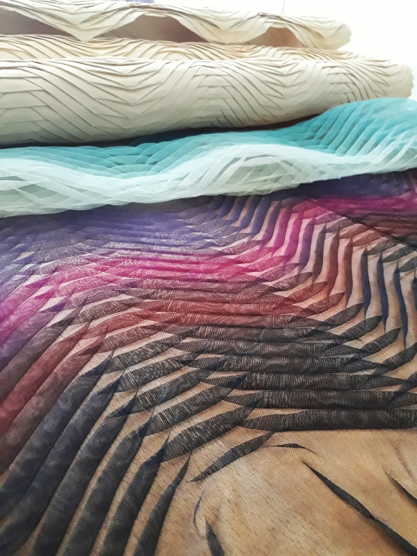 Pleating gives a textile a new dimension, a depth and light reflection, it can be subtle or extravagant, haute couture and everyday casual. It can give used textiles a new look, a new life.