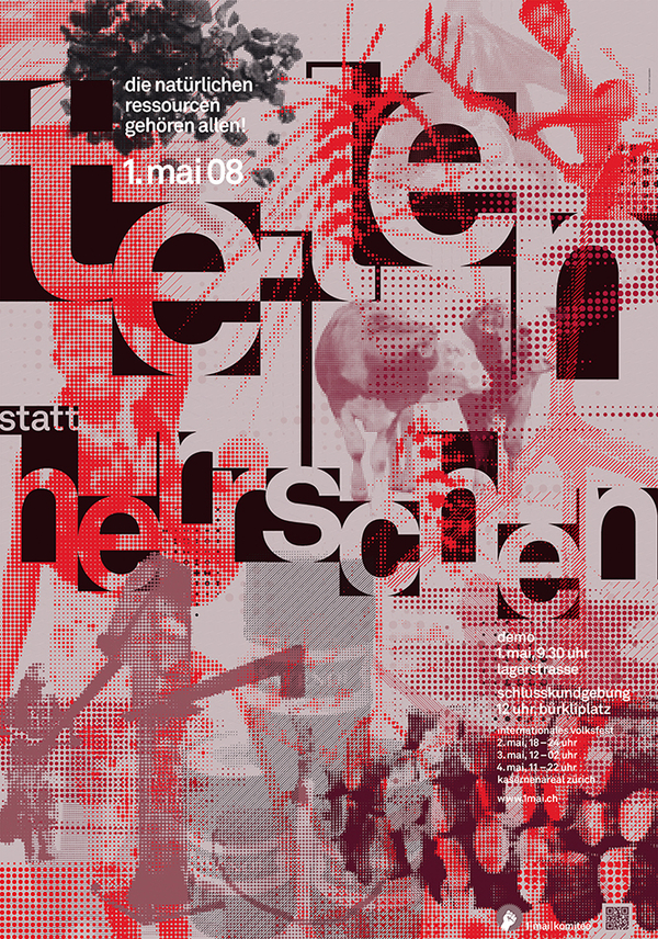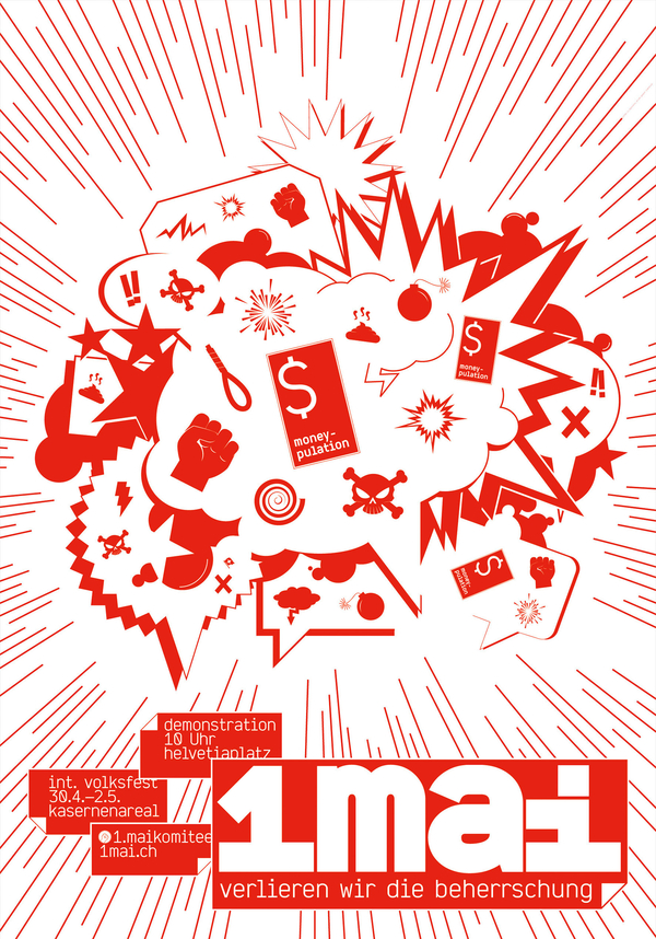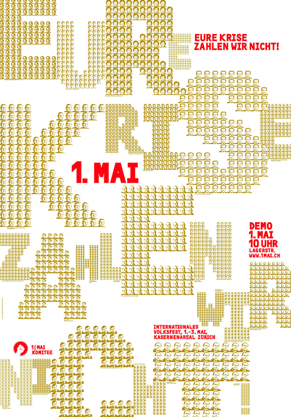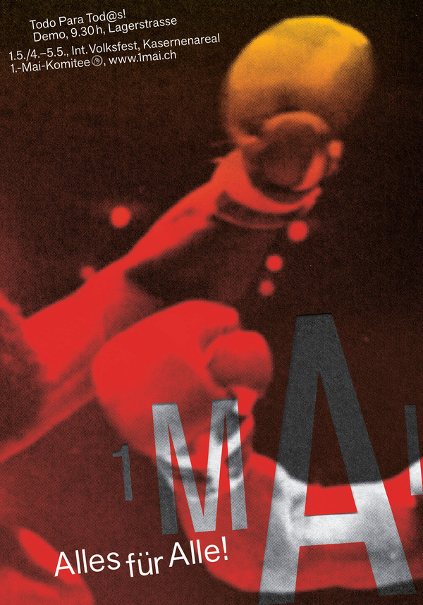 Since 2008, the graphic design studio Studio Nüssli+Nuessli has designed the iconic May Day poster for the 1.-Mai-Komitee Zürich. The committee, composed of over 50 political groups, has organised Zurich’s annual Labour Day demonstration and celebration since 1980.